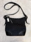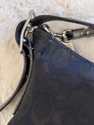❤️ Early 2000’s vintage classic Coach bag! Size is approximately 11”x9”x3”! Black canvas with the classic “C” logos. And black leather bottom and corners! Adjustable strap is also leather. Zipper closure! Silver hanging coach tag! This bag is in pretty good pre-owned condition! Super clean! There’s a small scuff on the bottom. And the only flaw is the top corners have signs of wear (see pictures). Besides that it’s been well kept by 1 owner for years. ❤️ SMOKE FREE & PET FRIENDLY HOME (all my items are stored in a pet free area)! I ship the next day. But usually the same day. As long as it isn’t super late in the day, and minus Sunday’s & holidays. Any questions just ask! I also can bundle to help you save on shipping!