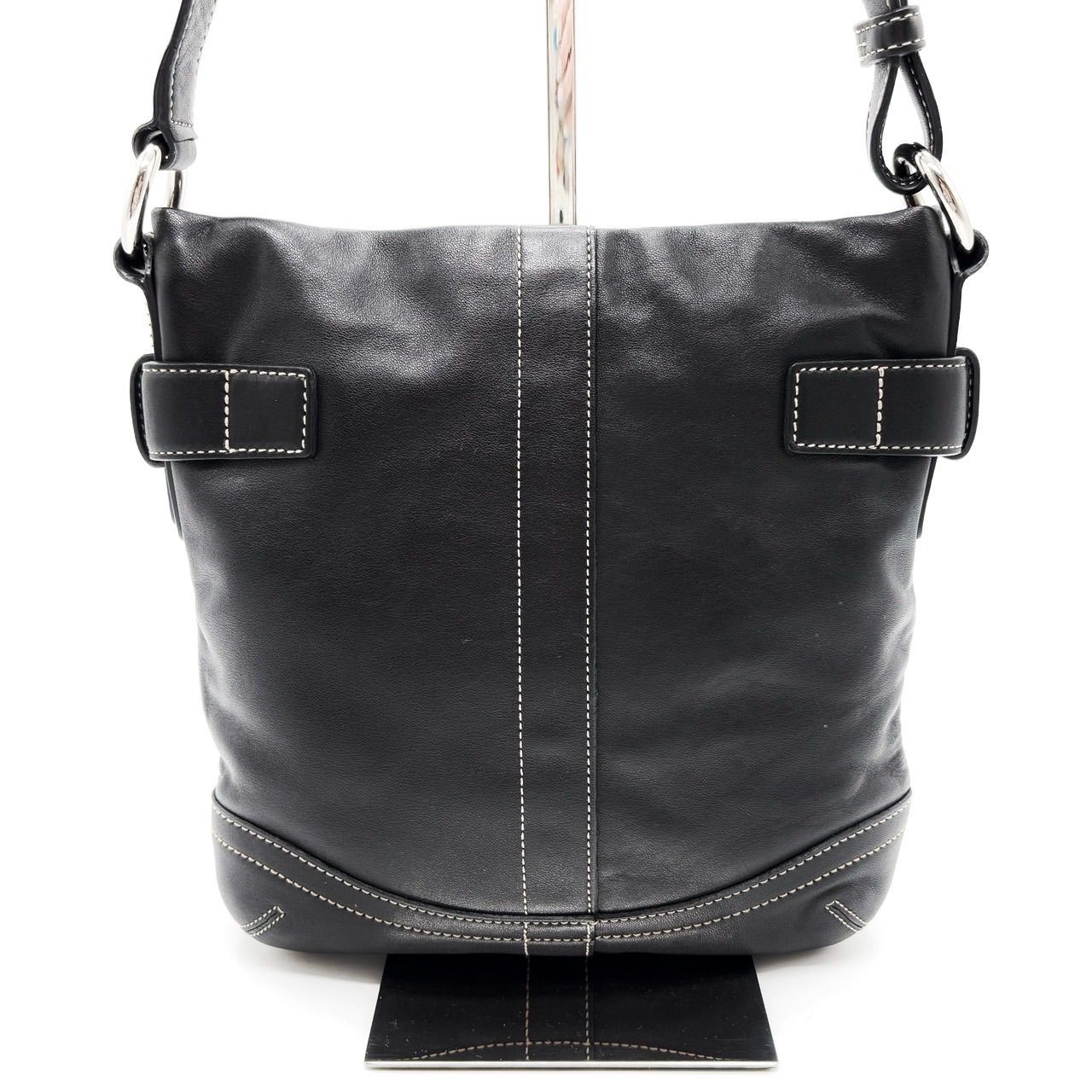 COACH shoulder tote bag with silver buckle hardware logo embossed charm detailing