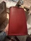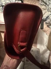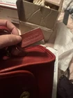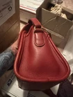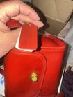 The COACH vintage 9018 Emmie Red Crossbody Flap Bag is a rare 90s USA leather satchel that exudes classic style with a modern twist. This shoulder bag features a turn lock closure, gold hardware accents, and a red exterior color with a solid pattern. The bag also includes inner pockets, a crossbody strap handle style, and a leather lining material in a tan color. Personalization can be done with lining edge dye in a periwinkle contrast color, making this Coach bag a unique and timeless accessory for any casual occasion.