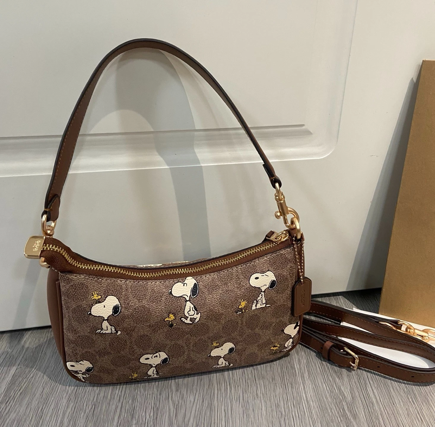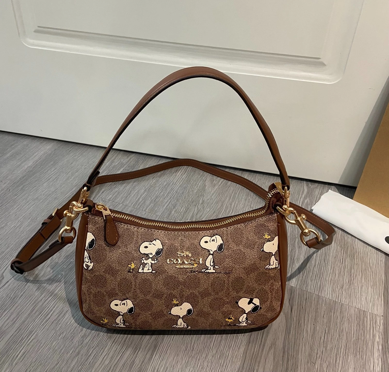 COACH x PEANUTS Teri Shoulder Bag Tan Brown Snoopy Print Signature Canvas CBJ88 Signature coated canvas shoulder bag finished with the brand's solid craftsmanship. Description Multifunctional pocket inside Zip top closure Lined Detachable handle (21.5cm from shoulder to body) Detachable strap (58cm from shoulder to body) 2-way shoulder & diagonal hanging Size: 15.5cm long x 24.5cm wide x 7.5cm gusset Can hold a long wallet Please note that the color, specifications, size, etc. in the image (including the pattern) may differ slightly from the actual product. Thank you for your interest in our item! Are you looking for something similer? Please check it out by categories from "visit store"! Our items has been categorized and easier to find items. Any quesitons or concerns? Shoot us a message!
