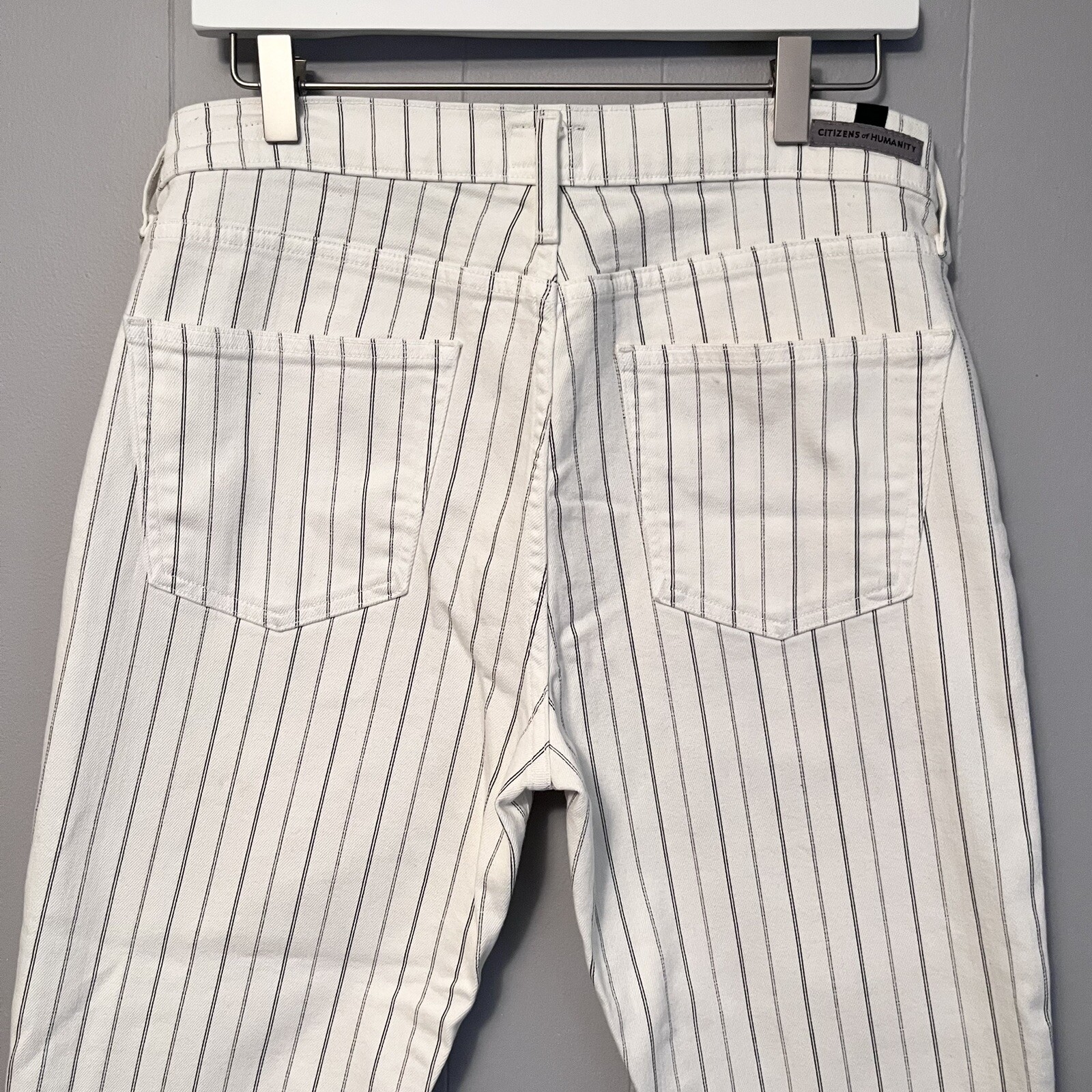 Very good pre owned condition Citizens of humanity rocket high rise cropped jeans in white and blue stripes Cotton no stretch Nautical coastal