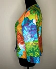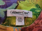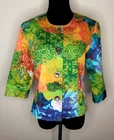 Beautiful Coldwater Creek bright fun colored line jacket. 10P cotton blend with polyester lining. 3/4 sleeves and oversized front buttons. Gold accents. Front slash pockets. Very nice! Chest: 18 1/2" Length: 21"