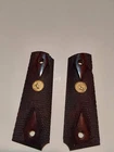 COLT FACTORY 1911 WOOD GRIPS IN EXCELLENT CONDITION, I BELIEVE THEY CAME OF A 1990 SERIES 80 GOLD CUP PISTOL, BECAUSE THEY WERE IN THE BOX WHICH I HAVE LISTED ALSO. SHIPPED USPS GROUND ADVANTAGE IN CARDBOARD BOX