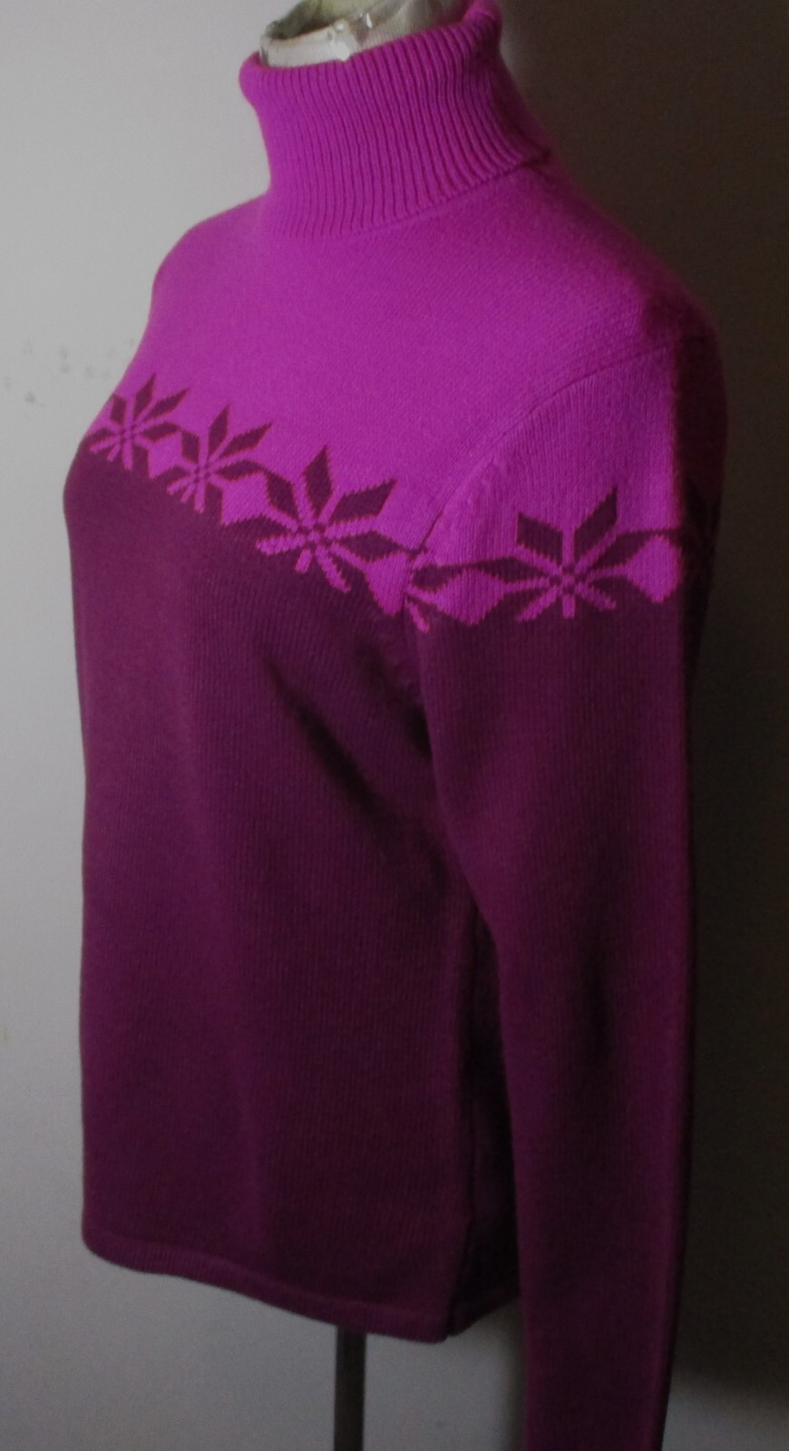 See my EBAY STORE at “SAMTPC53” to view 1000’s more of my Women's SWEATERS!!! Combine Shipping: (on multiple items you pay full price on heaviest item first and then HALF PRICE shipping on ALL other items. Women's Turtleneck Sweater. Brand: COLUMBIA Sportswear. Description: women's COLUMBIA Sportswear long sleeve turtleneck sweater, see pics. Color: Magenta. Size: L (please see measurements). Measurements: 21" armpit to armpit, 26" neckline to hem, 20" insleeve. Material: 100% Acrylic. Condition: Very Good condition.