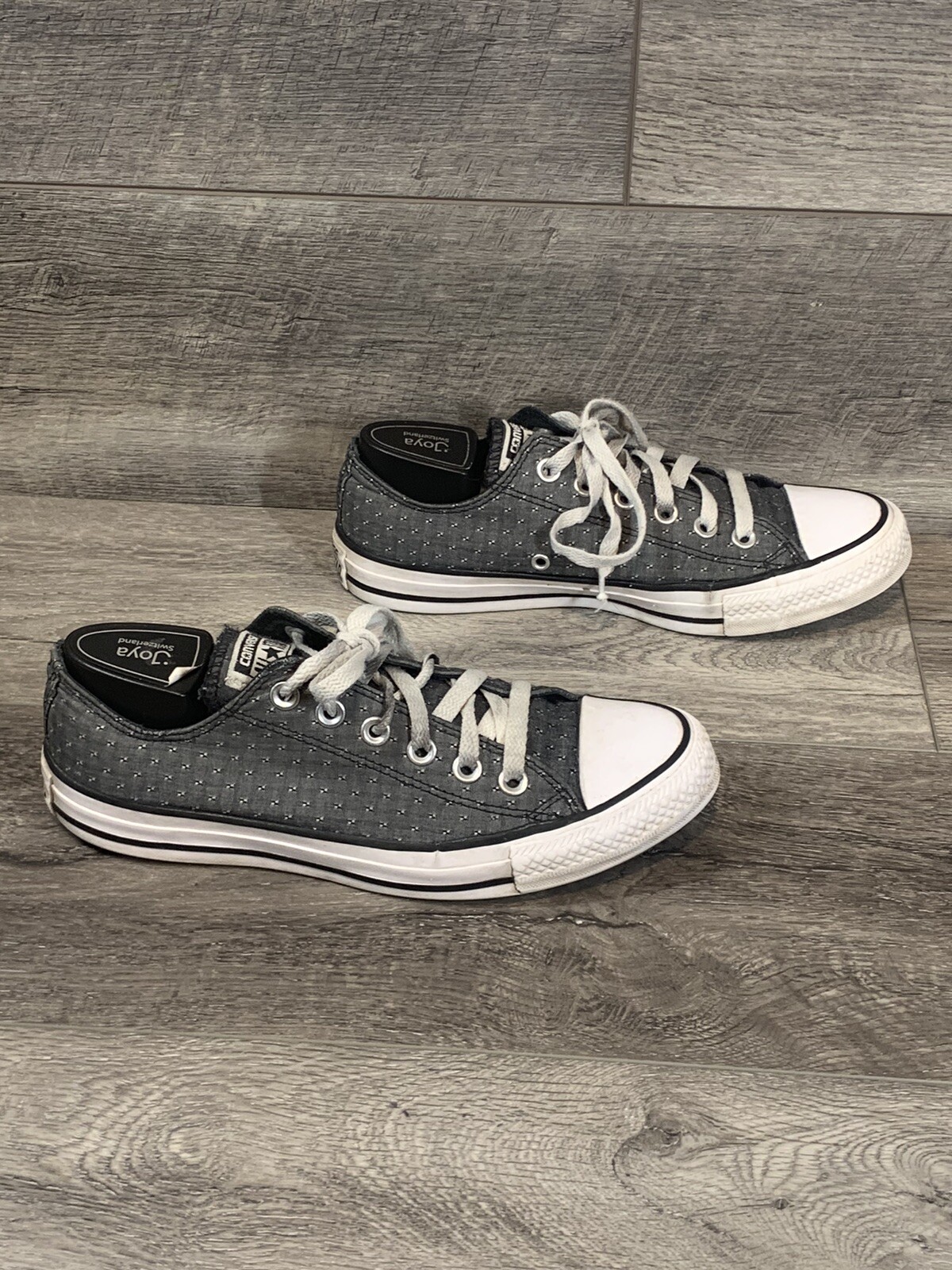 CONVERSE All Stars Low Sneakers Shoes Unisex Womens 8 Mens 6 Gray White 153034F Pre-owned, but still in great shape. No holes, rips, stains or signs of significant wear. See photos. See my store for many other name brand items. Discounts for multiple items purchased.