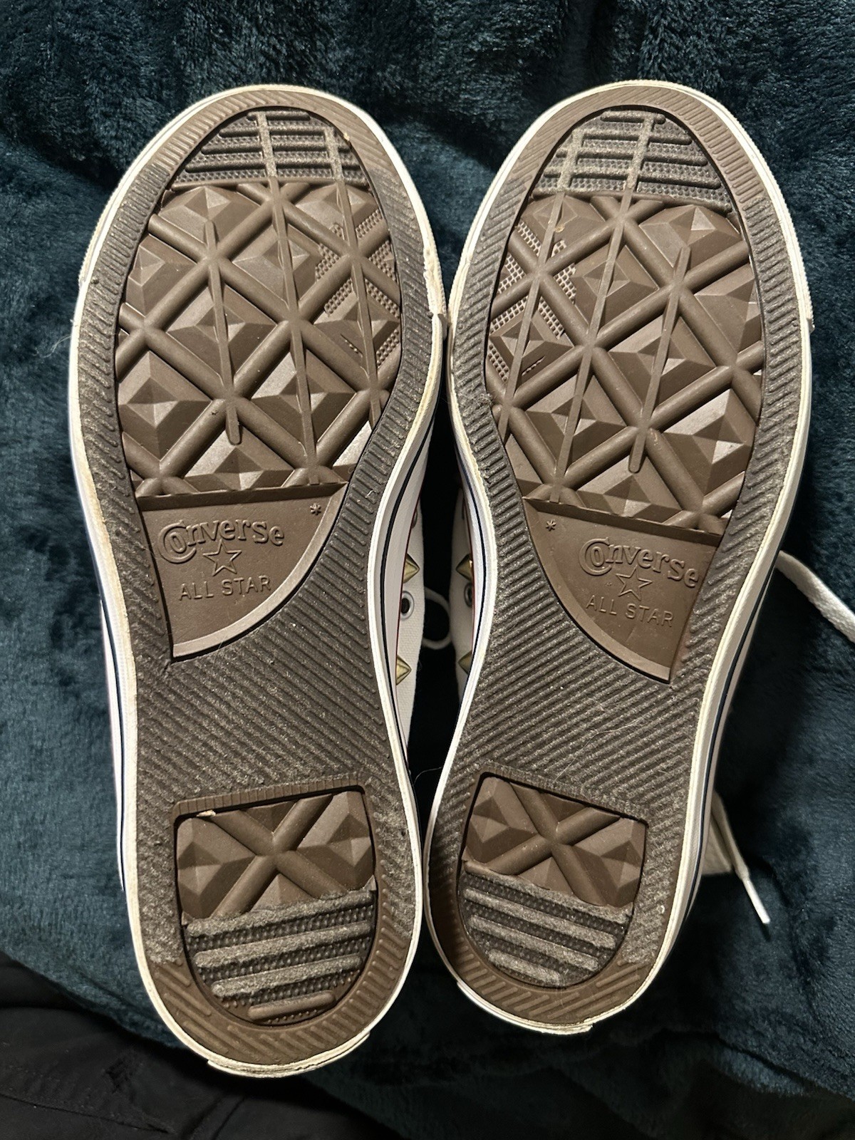 CONVERSE Chuck Taylor All Star White Sneakers Gold Spike Studs Cheetah Print tongue SZ 6 Men 8 Women. Back sole has some wear please see all pics for any defects