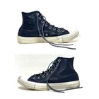 CONVERSE Chuck Taylor Hi-Top Unisex Leather Sneakers : Color : Navy Blue : Size : Mens 7 / Womens 9 : Condition : Good Pre-Owned * No Smells / No Markings * Flaws : Various Scuff Mark & Smudges * Cleaned & Sanitized : Shoes Laces : Like-New Condition Light Blue Insole : Good Pre-Owned Condition : Questions : Please Message Before Purchase : Thank you for your interest. : Shipping : - Shoes will be securely packaged in a box . - Mailed Within 3 Business Days.