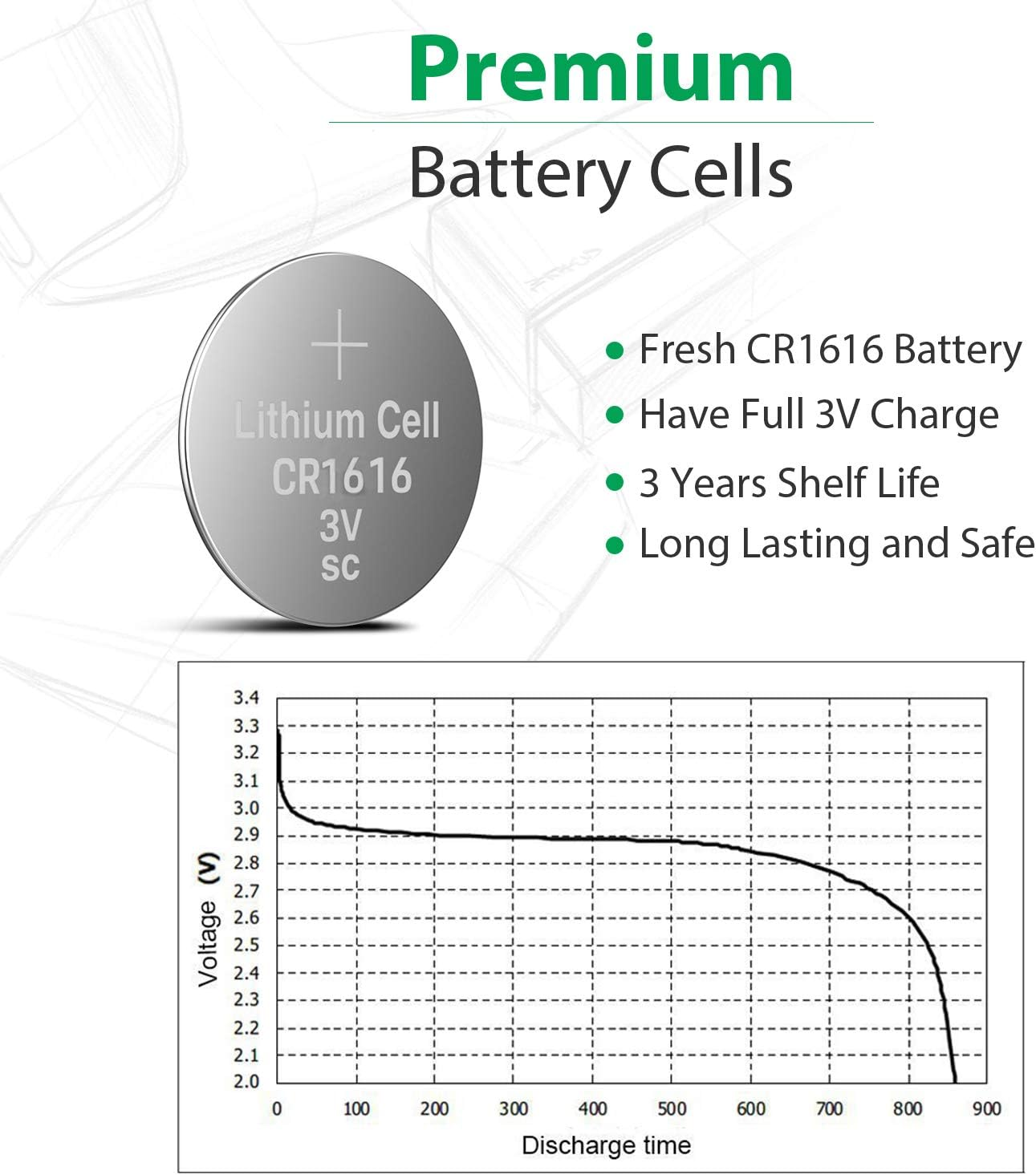 SAFE AND RELIABLE: LiCB Since 2006,Specialize in Battery 12 Years. CR1616 Button Coin Cell Tested under Strict Quality Control Standards. CE and ROHS Certified. Grade A cells CR1616 Ensure Longer Battery Life and Long Lasting Power. Long-Lasting AND COST-SAVING:Get the 20 PCS Exact Fresh CR1616 Battery, Have Full 3 Volts Charge, 3 Years Shelf Life. Safety AND LEAK FREE -- Zero Mercury LiCB CR1616 Batteries Offer Premium Performance in a Variety of Devices. LiCB Batteries are Designed not to Leak in Devices During Their Usage and for up to 3 Years after They are Left in a Device. MULTIPLE COMPATIBILITY : Equivalent to other Brand Models, Like 1616 CR1616 DL1616 ECR1616 BR1616 and Works Perfect for Remote Control, Watch, Calculator,Electronic Notebook,Thermometer, Mobile game. What You Get: 20 PCS CR1616 Batteries in Exact Blister Pack.18-month Warranty and Friendly Customer Service. LiCB CR1616 Battery,Long-Lasting & High Capacity CR1616 Lithium Batteries,3 Volt Coin & Button Cell ( 20-Pack)
