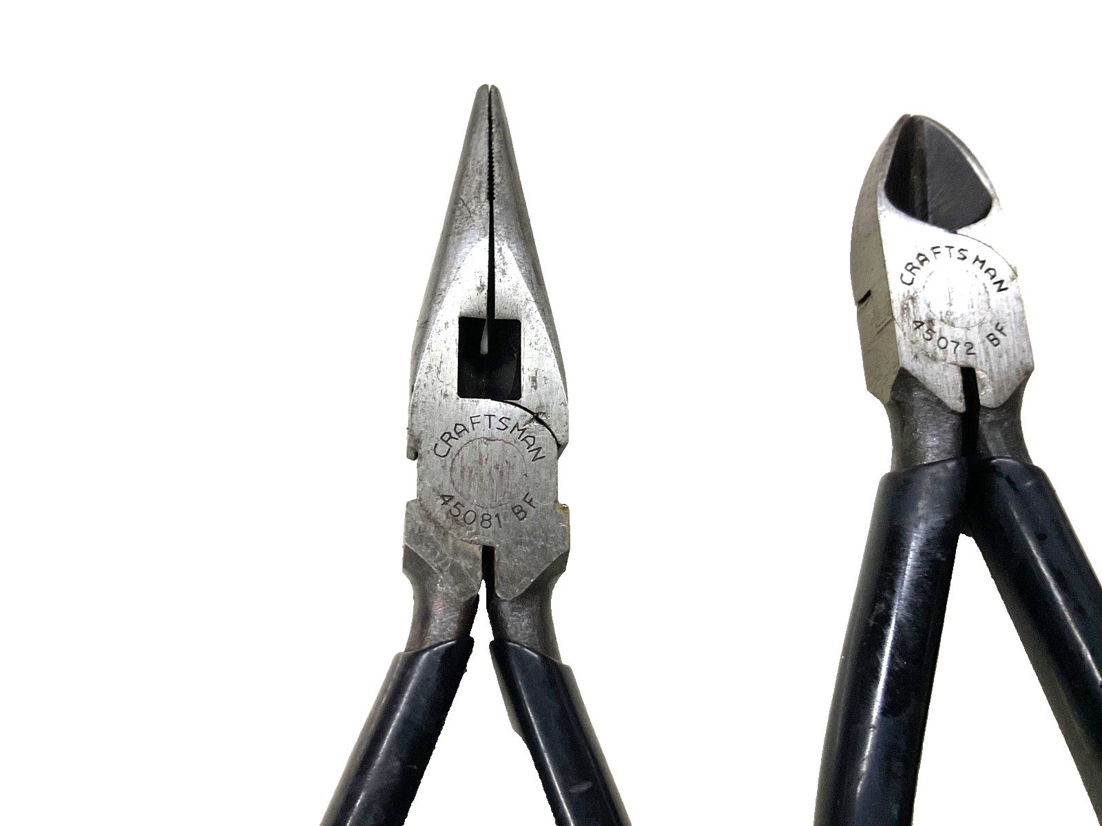 THIS IS A PREVIOUSLY USED ITEM CRAFTSMAN BF-SERIES 3-pc. SET OF PLIERS INCLUDES: 7” SLIP-JOINT, 45378 6-1/4” DIAGONAL CUT, 45072 6-1/4” NEEDLE NOSE, 45081 Made in JAPAN NO ENGRAVINGS COMES JUST AS PICTURED GOOD USED CONDITION! WE ALWAYS HAVE SEVERAL LISTINGS WITH QUALITY NAME BRAND TOOLS...CHECK THEM OUT! 110-A