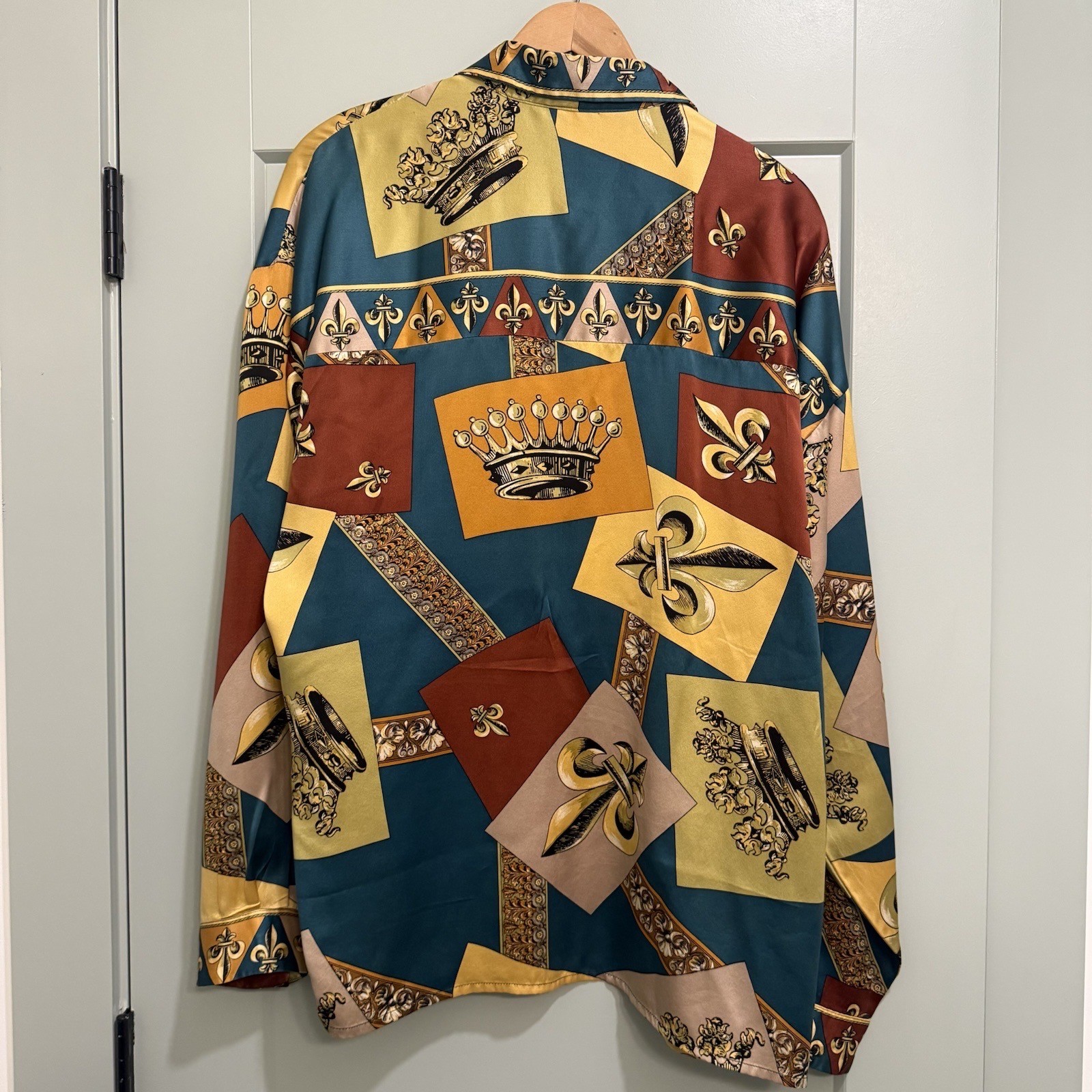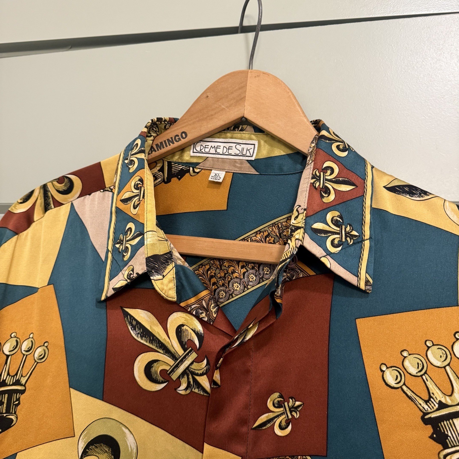 CREME DE SILK Men's Shirt RARE Fleur-de-lis & Crown Design XL. Condition is Pre-owned - Excellent. Shipped with USPS Priority Mail.
