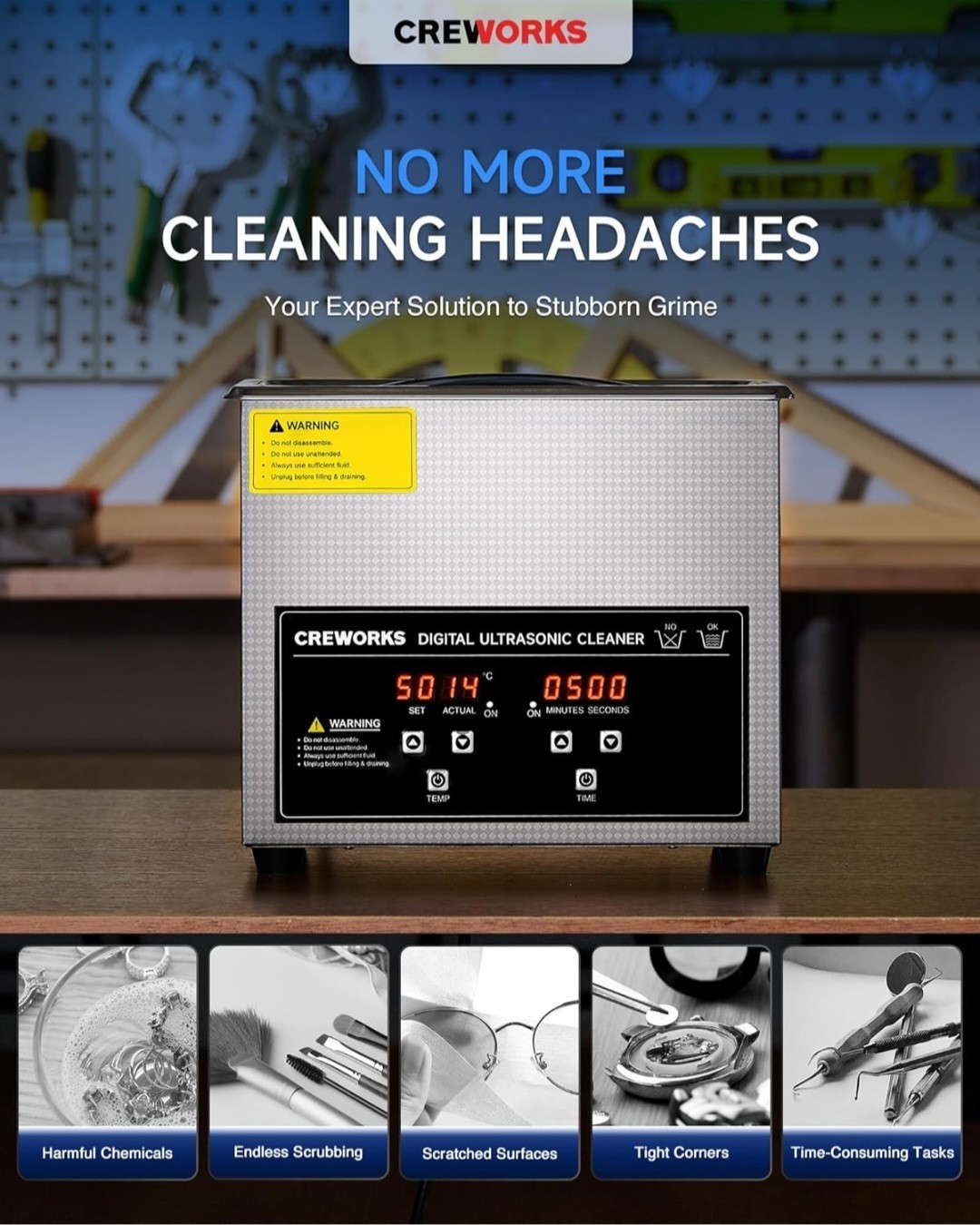 CREWORKS 3L Ultrasonic Cleaner, 0.8 gal Digital Sonic Cavitation Machine, 120W Stainless Steel Professional Jewelry Cleaner for Cleaning Tool Watch Glasses Retainer Denture Parts with Heater & Timer #36.6.25