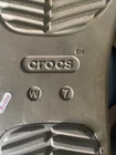 Elevate your casual look with these stylish Crocs Brooklyn ankle strap wedge sandals in nude/shitake. The slip-on design and solid pattern make them perfect for any casual occasion, while the flat heel ensures comfort all day long. The ankle strap adds a touch of sophistication and the synthetic material provides durability for the summer and spring season. These sandals feature a rubber upper material and synthetic lining and insole material. The outsole is also made of synthetic material. The Crocs Brooklyn Wedge model is a perfect addition to any woman's shoe collection. Get your hands on these sandals today and make your casual outings more stylish! Bought brand new and worn 2 times for a wedding rehearsal and the wedding.