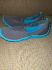 CROCS-Busy Day-Stretch Fabric Slip On Flats-Gray/Turquoise-Size 6. EUC!!