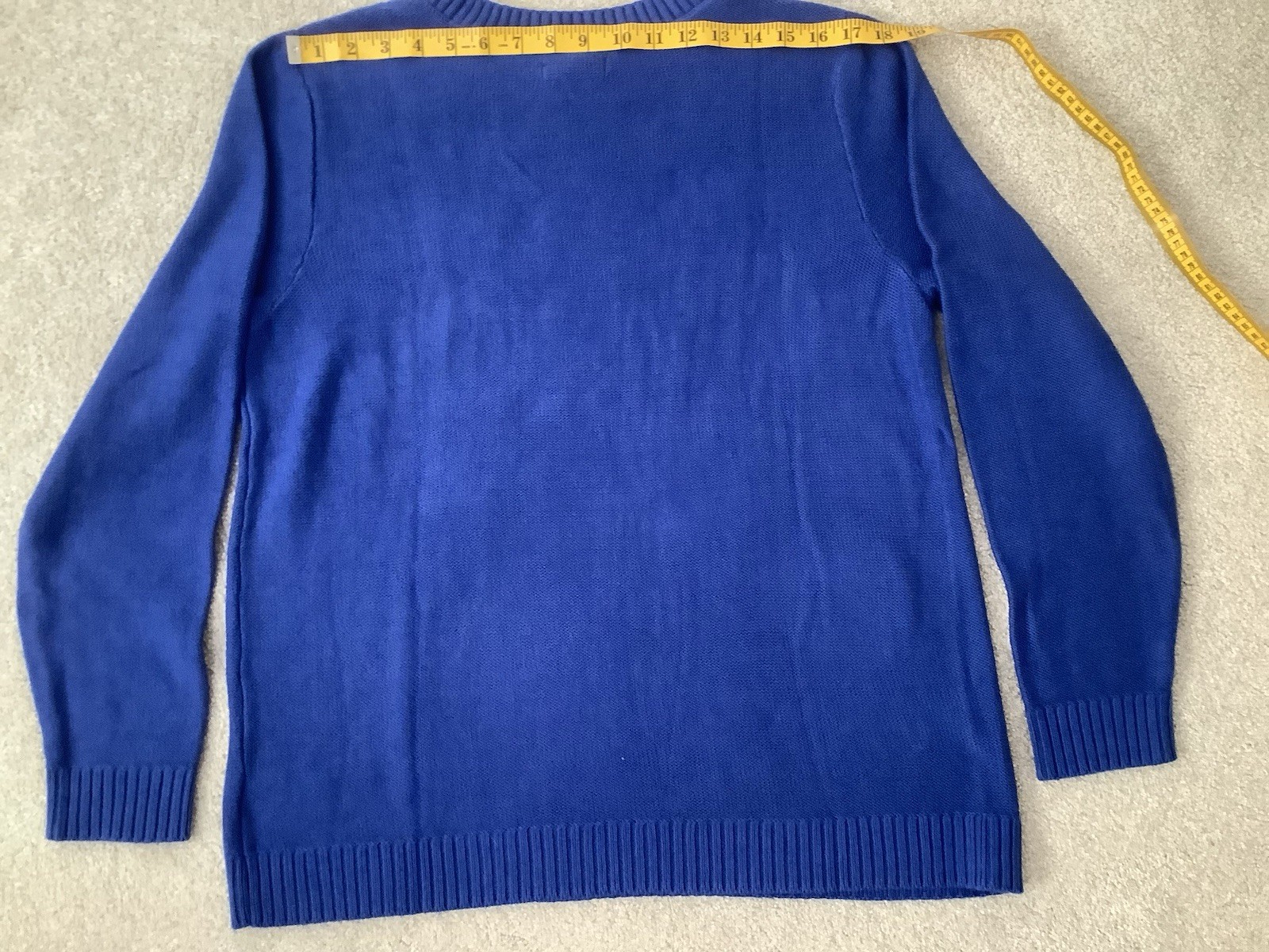 The Croft & Barrow New Knitted Sweater is a stylish and versatile addition to any woman's wardrobe. Made from comfortable cotton material with a solid blue color and tight-knit design, this sweater is perfect for casual, workwear, or business occasions. The neck under the throat and long sleeves provide a classic and preppy look, while the hipster and bohemian themes add a trendy touch. This pullover sweater is machine washable and available in size XL, making it an easy and practical choice for the winter, fall, and spring seasons. Composition: cotton-53%, rayon-7%, nylon-40%. Shoulders-18, chest-42, sleeve-24, length-25 inches.