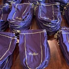 This Crown Royal bag is a must-have for any collector or fan of the brand. The purple bag features yellow gold trim and is large enough to hold a 1.75 liter bottle or a half gallon bottle. It is an original item, with no modifications, and was made in Canada. The bag is perfect for advertising purposes and represents the distillery brand well. It is a featured refinement for Crown Royal collectors and is a great addition to any food and beverage advertising collection. The bag is in good shape and ready for a new home. Over 300 bags available.