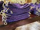 This Crown Royal bag is perfect for storing your large 1.75 liter bottle or half gallon bottle. The purple bag features a yellow gold trim and is adorned with the Crown Royal logo. Made in Canada, this original piece of advertising is a must-have for any collector or fan of the distillery theme. The bag measures 12/13 inches and can hold a variety of items besides bottles, making it a versatile addition to your collection. Whether you use it for storage or display, this Crown Royal bag is sure to be a conversation starter.