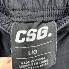 CSG Jogger Pants Mens Large Cargo Canvas Track Black Elastic Waist Cinch Ankle Very good condition, see all pictures for views. •Waist: 30"- 34" Elastic Waist w/Drawstring. •Inseam: 30" •Rise: 11" Thank you for your purchase, we appreciate you!
