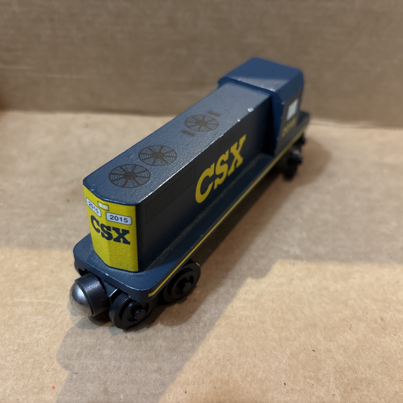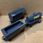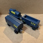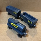 Whittle Shortline Railroad CSX-T GP-38 Diesel Engine Wooden 2015 + 3 Type Cars Box car, Hopper Car, Tanker Car - all in pretty nice shape. See photos for wear and tear. Ships usps ground advantage. Goes with Thomas and brio wooden railway.