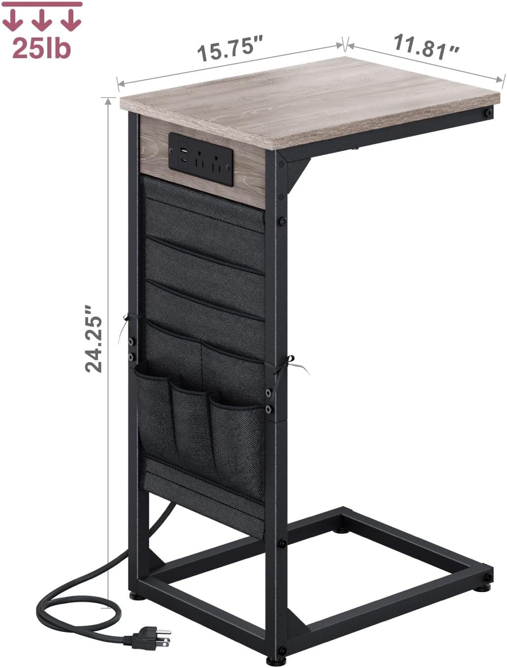 C-Shaped End Table with Fast-Charging Station, Small Couch Side Table with Storage Bag, Sofa TV Tray Table for Living Room, Bedroom, Bedside ET-GY-1 About this item 【MULTI-LAYER STORAGE BAG】---This table size is 15.7“D x 11.8”W x 24.3"H. Small bag for remote control, cell phone, charger, medium bag for notepad, double-layer large bag for tablet, magazine, newspaper, etc., easy to store and save space. 【END TABLE WITH FAST-CHARGING STATION】---This side table is equipped with 2 AC, 1 USB + 1 TYPE-C (5V 3A) fast-charging ports, the power cord is 5 feet long, convenient to charge your phone, computer, ipad. 【STRONG CONSTRUCTION】---Sturdy square steel tube, stable structure, not only saves space, but also good stability, and the product is equipped with 4 adjustable feet to increase the stability of the table, and at the same time to prevent the product from scratching the floor. 【SUITABLE FOR SMALL SPACES】---C-shaped design, it can be comfortably installed in small spaces, and can easily slide under the sofa or bed for your convenience. 【EASY TO ASSEMBLE】---Simple structure, detailed instructions, clear product number, so you can simply and quickly put the product in place. 【MULTI-SCENE APPLICATION】---Suitable for sofa table, bedside table, TV tray table, laptop table, etc., applicable to the bedroom, living room scenes, the desktop can be placed on the phone, computer, coffee cups, lamps, etc. › See more product details The triangular metal pieces reinforce the stability of the structure Adjustable legs to prevent floor scuffing and protect the table. Particleboard provides solid support and resists stains. 2AC, 1USB + 1TYPE-C (5V3A) fast-charging ports, the power cord is 5 feet long, convenient to charge your phone, computer, ipad. #109,357 in Home & Kitchen ( See Top 100 in Home & Kitchen ) #337 in End Tables Shipping USA-Based! Fast & Free Shipping Daily. Customer Satisfaction Guaranteed. Orders to U.S. territories (PR, AK, HI, GU, VI, Overseas) require you to contact us first to ensure we can ship to your location. Return We accept returns that are reported within seven (7) days, provided items are unused and in original packaging; otherwise, restocking fees or claim rejection may apply. Payment We accept PayPal and All Major Credit Cards. We strive to ensure your satisfaction and are happy to resolve any issues. Please visit our eBay store to check out other items for sale! Thank you for shopping at our store.