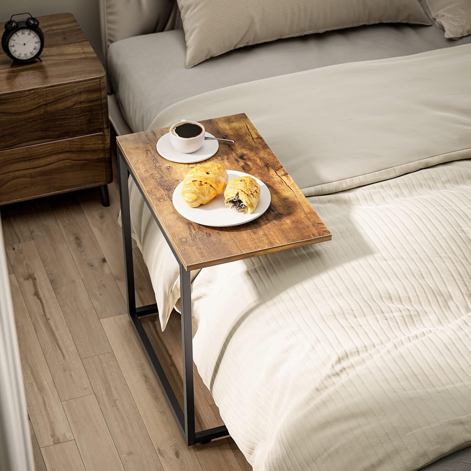 C Table Make Items Within Reach: Easily slide the end table underneath or beside your sofa. All your needs such as coffee, refreshments, TV remote and magazines within reach. Thoughtful design of side table brings unexpected convenience and comfort to your life. C table end table lets you better enjoy your leisure time. Modern Look & Premium Quality: Classic wood grain surface takes this end table up a notch. The C shaped end table is a delightful decoration and fits in well with various kinds of home decor styles. Made of high-quality wood and matte frame, this couch table is sturdy and smooth. This side table for couch will be an irreplaceable presence in any home. Space Saver: For homes without more space for traditional nightstands and side tables, this c table is certainly the excellent choice for living room and bedroom. Just slide it underneath your sofa or your bed, and the side table for small space will maximize the use of limited space. Versatile End Table Meets All Needs: With C shaped design and classic looking, this side table can be a TV tray table, a nightstand, a breakfast desk, a couch table, a laptop table and more. This end table meets all your needs for daily use and brings you convenience and pleasure into your day. Right Size for Comfortable Use: The elegant surface of this c table is 19.7" x 11.8" that is large enough to place your laptop and coffee. The height of the c table end table is 27" and there is spacious room for your legs. The c shaped end table is a better solution for work at home.