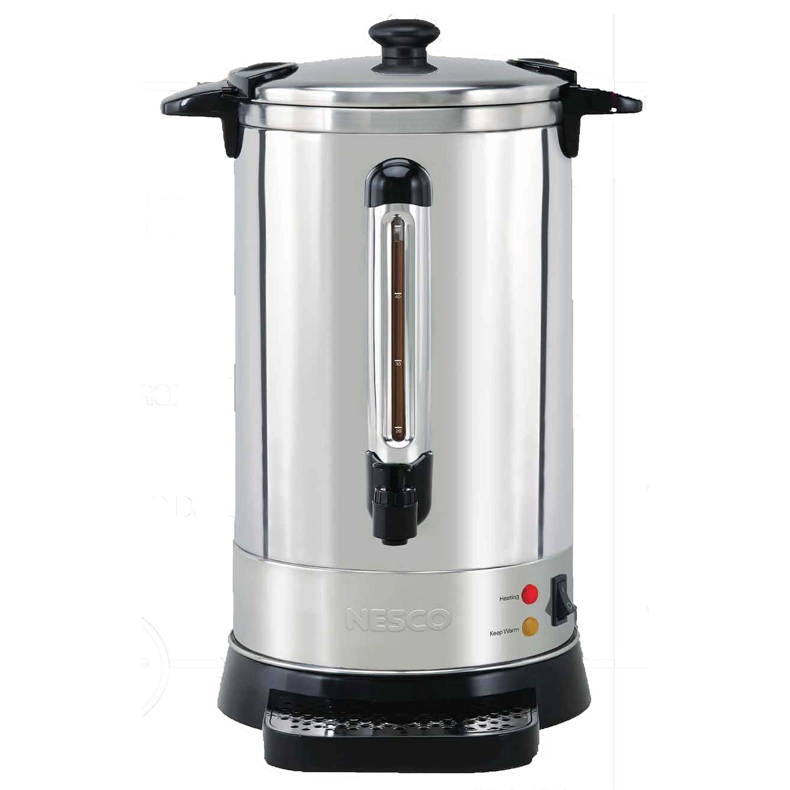 Stainless steel housing with double-wall insulation Makes 50 - 5.7 oz. cups Brews about cup per minute Drip tray for less mess Dishwasher safe basket Note: Please refer the user manual below for trouble shooting