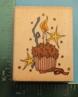 CUPCAKE with CANDLE Confetti Rubber Stamp by Uptown Birthday Celebration