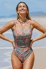 CUPSHE Paisley V Neck Tummy Control Long Torso One Piece Swimsuit Small *NWT*