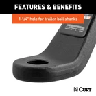 CURT 45458 2-1/2" Receiver Trailer Hitch Ball Mount SKU: C9345458 Brand: CURT Size: Class V Color: black Condition: New MPN: 45458 Package Quantity: 1 Number of Items: 1 Part Number: 45458 DEPENDABLE STRENGTH. This heavy-duty ball hitch is constructed from high-strength forged steel and is rated to tow up to 20,000 pounds gross trailer weight and 2,700 pounds tongue weight (limited to lowest-rated towing component). HEAVY-DUTY. This forged trailer hitch ball mount comes with a 2-1/2-inch x 2-1/2-inch shank to fit any industry-standard 2-1/2-inch receiver. The ball mount also has a 4-inch drop and 2-1/2-inch rise to promote level towing. READY TO TOW. Hitching up your heavy-duty trailer is easy with this 2-1/2-inch ball mount. It features a 1-1/4-inch hole to accept a trailer hitch ball with a 1-1/4-inch diameter shank (trailer ball sold separately). CORROSION-RESISTANT. For long-lasting use, this truck ball hitch is protected with a highly durable carbide black powder coat finish, easily resisting damage from rain, dirt, snow, road salt and other corrosive threats. EASY TO INSTALL. To install this class 5 hitch ball mount on your truck, simply insert the shank into your vehicle's 2-1/2-inch hitch receiver. The rounded shank makes installation easy. Then, secure the shank with a hitch pin (sold separately).