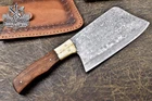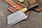 Custom Hand Made DAMASCUS KITCHEN CHEF CLEAVER KNIFE WITH ROSE WOOD HANDLE We offer a shipping discount for More then one purchased . And discount will be apply on combine invoice, Discount will not apply on separate payment. ITEM DETAILS OVER ALL LENGTH 12.0 inches long (Approx) HANDLE LENGTH 5.0 inches long (Approx) BLADE LENGTH 6.0 inches long (Approx) BLADE HARDNESS 58-60 HRC Which Holds The Sharp Edge For Long Time. HANDLE ROSE WOOD COVER LEATHER SHEATH This Awesome custom made KNIFE has a nice hand forged with the combination of 4340 & 1080 steel. HOW OUR DAMASCUS IS MADE: All our Damascus is real and not just an acid etch. Damascus is a mixture of 1080HC and 4340 nickel carbon. You heat them up together and then fold the bar over and over to get the desired layers, ours are 396 layers. Then you burn the blade in acid, and it turns the nickel satin color and the high carbon turns blackish gray. This is how the layers are exposed to show the layers of the new steel created coined "Damascus". All Damascus is acid etched to show the layers. If you high polish the metal it will be shinny satin like all steels. Only after you burn the sides of the blade with acid do you see the layers of the two steels. Makes sense? After we make our knives we high polish the handles and put an edge on the blade. The high polishing buffs off the acid burned layer of the handle, and the blade edge is sharpened and the acid burned edge becomes satin. You can re-burn the tang of the blade near the handles and the edge of the blade and it will show the layers once more. All our knives are hand made, durable and unique ***** YOU WILL RECEIVED THE SAME KNIFE Qality Standards Our Damascus blades are made from high quality non-stainless steels which rival or exceed any Damascus blade made from the 10 series with 4340. Our Damascus combination has taken years to perfect and has been tested under a variety of application which will offer professional performance in categories of toughness, strength (lateral stress) and edge honing and holding ability. In a 5 spot Rockwell test our blades will average near or close to 58 which offers a perfect balances between its toughness and strength.Our blades due to carbon content need to be regularly treated with wax and/or 3 in 1 oil to maintain its superior quality. Questions if you have any question feel free to send us message we aim to answer all questions within 24 hours Feedback If you are not satisfied with our service please contact us before leaving any negative or natural feedback. We will resolve all issues as quickly as possible. Disclaimer We are not responsible for any injuries associated with the use of our tools. Our products are intended for legal use only by responsible buyers. Therefore, we will not sell our products to anyone under the age of 18. Before bidding please check your country laws as some countries Custom don't allow this. If your purchase is held by Custom Authorities in your country/State we will not be responsible for that and no refund will be issued Shipping We offer a 20% shipping discount for More then one purchased . And discount will be apply on combine invoice, Discount will not apply on separate payment We ship within 24 hours after receiving complete payment but this can be delayed due to week ends or Governments and Religious Festivals . . This is beyond our control and we apologize for this inconvenience. Precautions Our Tools are very sharp so open and use them very carefully We are not responsible for any injuries associated with the use of our tools Tips to Care knife 1. NEVER STORE YOUR KNIFE FOR LONG TIME IN LEATHER SHEATH. 2. LEATHER CAN ABSORB WATER, WHICH WILL RUST THE KNIFE. 3. ALWAYS CLEAN THE BLADE AFTER USING WITH OIL OR WAX