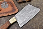 CUSTOM HANDMADE DAMASCUS KITCHEN CHEF CLEAVER WITH WOOD & BONE BOLSTER HANDLE