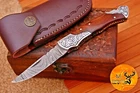 CUSTOM HAND MADE HAND FORGED DAMASCUS STEEL FOLDING BLADE POCKET CAMPING KNIFE Wood & Engrave Steel Bolster Handle This superb design knife is hand forged. Blade of this knife has a nice file work and is made of 512 layers of 4340 stainless steel and 1075 high carbon steel and hardness 55-58 HRC . This robust knife is lab tested under intense conditions, the balance and shape of this knife ensures perfect grip. Overall Close Length: 4" Inches Blade Length: 3.5" Inches Handle Length: 4" Inches Damascus Design: Twist Pattern Layers: 512 Sheath: Leather Hand Forged Hardness: 55-58 HRC Package Includes: with Sheath Care Instructions: Keep the knife dry after each cleaning. Warning: Take care when removing product from packaging. Keep fingers clear of blades. Store away from children.