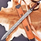 CUSTOM HANDMADE FORGED DAMASCUS STEEL SWORD Cocobolo Wood & Camel Bone With Damascus Steel Bolster Handle This superb design Sword is hand forged. Blade of this Sword has a nice file work and is made of 512 layers of 4340 stainless steel and 1075 high carbon steel and hardness 55-58 HRC . This robust Sword is lab tested under intense conditions, the balance and shape of this Sword ensures perfect grip. Overall Length: 25" Inches Blade Length: 18.5" Inches Handle Length: 6.5" Inches Damascus Design: Twist Pattern Layers:512 Package Includes: with Leather Sheath Warning: Keep fingers clear of blades. Store away from children.