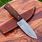 CUSTOM MADE HAND FORGED DAMASCUS STEEL SKINNER KNIFE HUNTING CAMPING SURVIVAL HIKING KNIFE Wood Handle This superb design knife is hand forged. Blade of this knife has a nice file work and is made of 512 layers of 4340 stainless steel and 1075 high carbon steel and hardness 55-58 HRC . This robust knife is lab tested under intense conditions, the balance and shape of this knife ensures perfect grip. Overall Length: 8.25" Inches Blade Length: 4.25" Inches Handle Length: 4" Inches Damascus Design: Rain Drop Pattern Layers: 512 Package Includes: with Leather Sheath Warning: Keep fingers clear of blades. Store away from children.