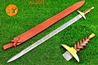 CUSTOM HAND MADE DOUBLE EDGE BLADE HAND FORGED DAMASCUS STEEL SWORD Wood & Brass Guard Handle This superb design Sword is hand forged. Blade of this Sword has a nice file work and is made of 512 layers of 4340 stainless steel and 1075 high carbon steel and hardness 55-58 HRC . This robust Sword is lab tested under intense conditions, the balance and shape of this Sword ensures perfect grip. Overall Length: 38” Inches Blade Length: 31” Inches Handle Length: 7” Inches Damascus Design: Twist Pattern Layers: 512 Package Includes: with Leather Sheath Bag Warning: Keep fingers clear of blades. Store away from children.