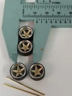 YOU ARE BUYING WHEELS ONLY TRUCK NOT INCLUDED CUSTOM WHEELS STAR 1 STAGGERED ALLOY AND GOLD WHEELS HEIGHT 12mm x6.5mm wide NEW STYLE DEEP AND FLAT FOR YOUR CUSTOM PROJECT ROLLING ON HW 1/64 SCALE 83 SILVERADO AND HW TRUCKS BRASS TUBE HW AXLE 1mm Please see pictures for measures WHILE SETTING AXLES ON WHEELS PUSH AXLE SLOWLY AND CAREFULLY DO NOT SET AXLE TO DEEP MEASURE AXLE CUT AND MAKE IT FLAT USING DREMEL OR ROTA RY TOOL DO NOT PUSH AXLE STRAIGHT PUSH ROLLING THE WHEEL FITS ON CHEVY SILVERADO AND HW TRUCKS NOTE: CAR NOT INCLUDED YOU ARE BUYING WHEELS ONLY WE COMBINE ITEMS EACH ADDITIONAL SET OF WHEELS $0.20 EACH ADDITIONAL CAR 1/64 SCALE $1.50, IF YOU CAN'T REQUEST COMBINED INVOICE PAY SEPARATELY WE WILL ADJUST AND REFUND THANK YOU