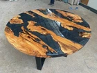 Add a touch of modern elegance to your living space with this custom wood and black epoxy coffee table. The table features a round shape with a live edge wood finish and a crystal tabletop material. The glossy handle finish adds a sleek look to the table, making it a perfect fit for any indoor or outdoor setting. The table has a seating capacity of up to four and comes with a maximum length of 30 inches, making it ideal for porches, kitchens, living rooms, home offices, or dining rooms. Crafted from acacia wood and resin, this coffee table is FSC certified and features iron legs for added stability. The table is fully assembled and requires no additional parts. The glossy finish and solid pattern make it a timeless piece that will complement any decor. Clean the table with a damp cloth for long-lasting beauty. This original, made-to-order piece from i Crafts Gallery comes in a box for easy transport. It can be used as a Coffee Table, Dining Table, Guest Table, Bed side Table, Center Table makes surely a luxury touch of your Room & This also make a wonderful gift to Family & Friends. The Product will be delivered free of cost through DHL, Fedex or any super fast delivery service from India. If there is any local tax, custom duties or Vat will be paid by Buyer at destination. The product is made durable hence do not require a lot of maintenance. Image may vary from Actual Product Since it is a natural product some cracks and shape changes can occur, this is just a wood's natural process of life! Just take it and add it to your arsenal and you are good to go. I will inform you with pictures and short videos during the construction phase and I will get your approval and after that I will start to make it. To maintain the product quality, please clean with simple soap, Water and dry & soft clothes. The parcel is dispatch with Proper Packing and fully insured covering all kind of Risk. If you are looking something customize, please let us know, we will make for you as per your requirement i.e. design, Shape & Size. This product is fully insured, in case of Breakage or damage during transportation, Please let us know with 3 days of delivery to notify to shipping & insurance company and we will provide new one product to you.