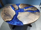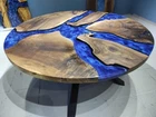 Add a touch of modern elegance to your living space with this custom wood and blue epoxy coffee table. The round table features a solid pattern and a glossy finish, with a tabletop made of crystal and a thickness of 35mm. The table is fully assembled and requires no additional parts, making it easy for you to start using it right away. The table has a seating capacity of up to four and comes with a damp cloth for cleaning. Its live edge wood and river edge theme make it a unique addition to your home, while its crystal tabletop material adds a touch of sophistication. This coffee table is perfect for your porch, kitchen, living room, home office/study, or dining room, and is made to order in India by i Crafts Gallery. It can be used as a Coffee Table, Dining Table, Guest Table, Bed side Table, Center Table makes surely a luxury touch of your Room & This also make a wonderful gift to Family & Friends. The Product will be delivered free of cost through DHL, Fedex or any super fast delivery service from India. If there is any local tax, custom duties or Vat will be paid by Buyer at destination. The product is made durable hence do not require a lot of maintenance. Image may vary from Actual Product Since it is a natural product some cracks and shape changes can occur, this is just a wood's natural process of life! Just take it and add it to your arsenal and you are good to go. I will inform you with pictures and short videos during the construction phase and I will get your approval and after that I will start to make it. To maintain the product quality, please clean with simple soap, Water and dry & soft clothes. The parcel is dispatch with Proper Packing and fully insured covering all kind of Risk. If you are looking something customize, please let us know, we will make for you as per your requirement i.e. design, Shape & Size. This product is fully insured, in case of Breakage or damage during transportation, Please let us know with 3 days of delivery to notify to shipping & insurance company and we will provide new one product to you.