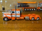 PLEASE TAKE NOTE: THIS UNIT HAS BEEN CUSTOMIZED, IT IS NOT AS ISSUED FROM MANUFACTURER DCP 1/64 PETERBILT 389 WITH 36" FLAT TOP SLEEPER WITH EAST MICHIGAN SERIES 31' & 20' END DUMP TRAILERS CHROME TRAILER BOXES, NICELY DETAILED MULTIPLE AXLES MINOR CUSTOMIZATION OF TRACTOR, FRAME MOUNTED TOOL BOXES, CUSTOM STRIPING, BRANDE TIRES, DOT ADDED COMES IN ORIGINAL BOX