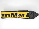 (CUT IN FABRIC) Nikon Anam Yellow Camera Neck Strap w/ Engraved Metal Buckles Description: Condition: AS-IS Functionality: READ! This strap is in AS-IS condition with some heavy signs of noticeable wear. This strap is comprised of a rubber back side and a fabric front side. On one end of the strap the fabric cut about halfway up the strap. This doesn't curently effect functionality but it could become an issue if the cut becomes any larger. From what I could find this strap was probably included with a Nikon FM2 released in Korea in the 1980's. Condition: LN "Like New" 99% -100% of NEW. EX+ "Excellent Plus" Exceptionally nice. Will show minimal signs of wear. EX "Excellent" Shows moderate wear. Possibly light discoloration but no tears or fraying. EX- "Excellent Minus" Shows signs of wear. Possible discoloration and small signs of fraying but no holes or tears. BGN "Bargain" Shows more than average wear. May have stains, discoloration or fraying but no holes or tears . UG "Ugly" Very rough looking. May have tears, stains, fraying or discoloration.