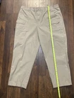 The Cabela's 7 Pocket Hiker Pants in Men's size 44x32 are designed for outdoor activities such as hiking, with a comfortable straight fit. Made from durable cotton canvas material in a solid beige color, these pants feature a zip and button closure, flat front, and multiple pockets for convenience. Perfect for casual, travel, or workwear occasions, these pants are machine washable and suitable for all seasons. Stylishly accented with logos and a nature-inspired theme, these khakis offer both functionality and comfort for the modern man on the go.