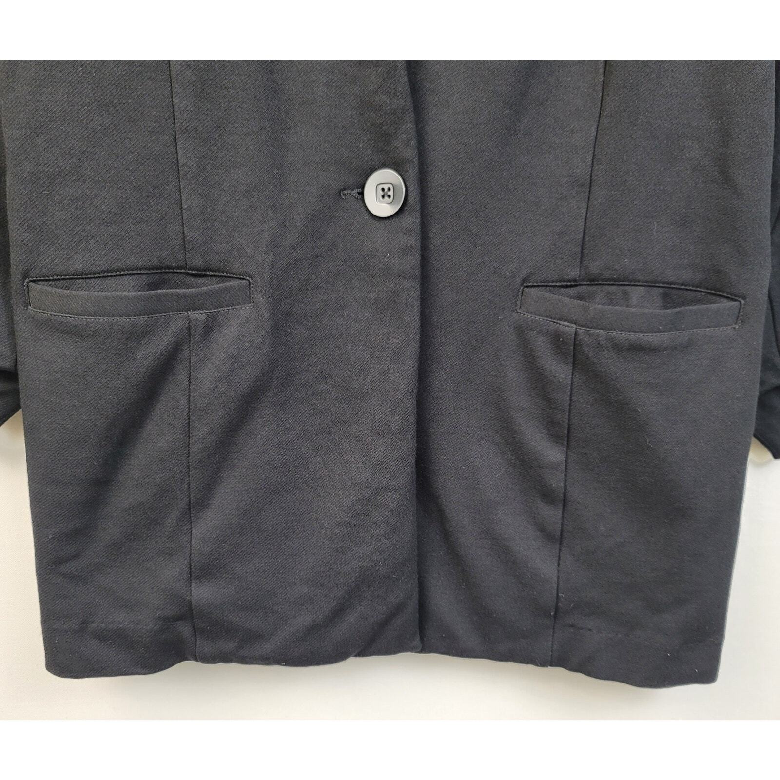 Cabi Collarless Blazer Jacket Womens Size 6 Black Stretch Ponte Knit Casual Office *Soft, stretchy fabric *Single button closure *Two front pockets (half size) *Angled 3/4 sleeves *Padded shoulders *Style 3026 Condition: Great pre-owned condition. No rips, stains or holes. Machine washable. Approximate measurements provided in photos. Fit tip: Compare the measurements of this item with those of a well-fitting garment that you currently own. Additional measurements available upon request. Let me know if you have any questions and thank you for supporting small business!