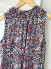 Cabi women's blouse in size M, regular fit. Features a multicolor floral pattern, ruffle neckline, and sleeveless design. Made from sheer fabric. Basic style suitable for casual outings or office wear. Manufactured in China. Pre-owned excellent condition. Brand: Cabi Size: M Color: Multicolor Type: Blouse Department: Women Style: Basic Material: Sheer Fabric Neckline: Ruffle Neck Sleeve length: Sleeveless Pattern: Floral Country/region of manufacture: China