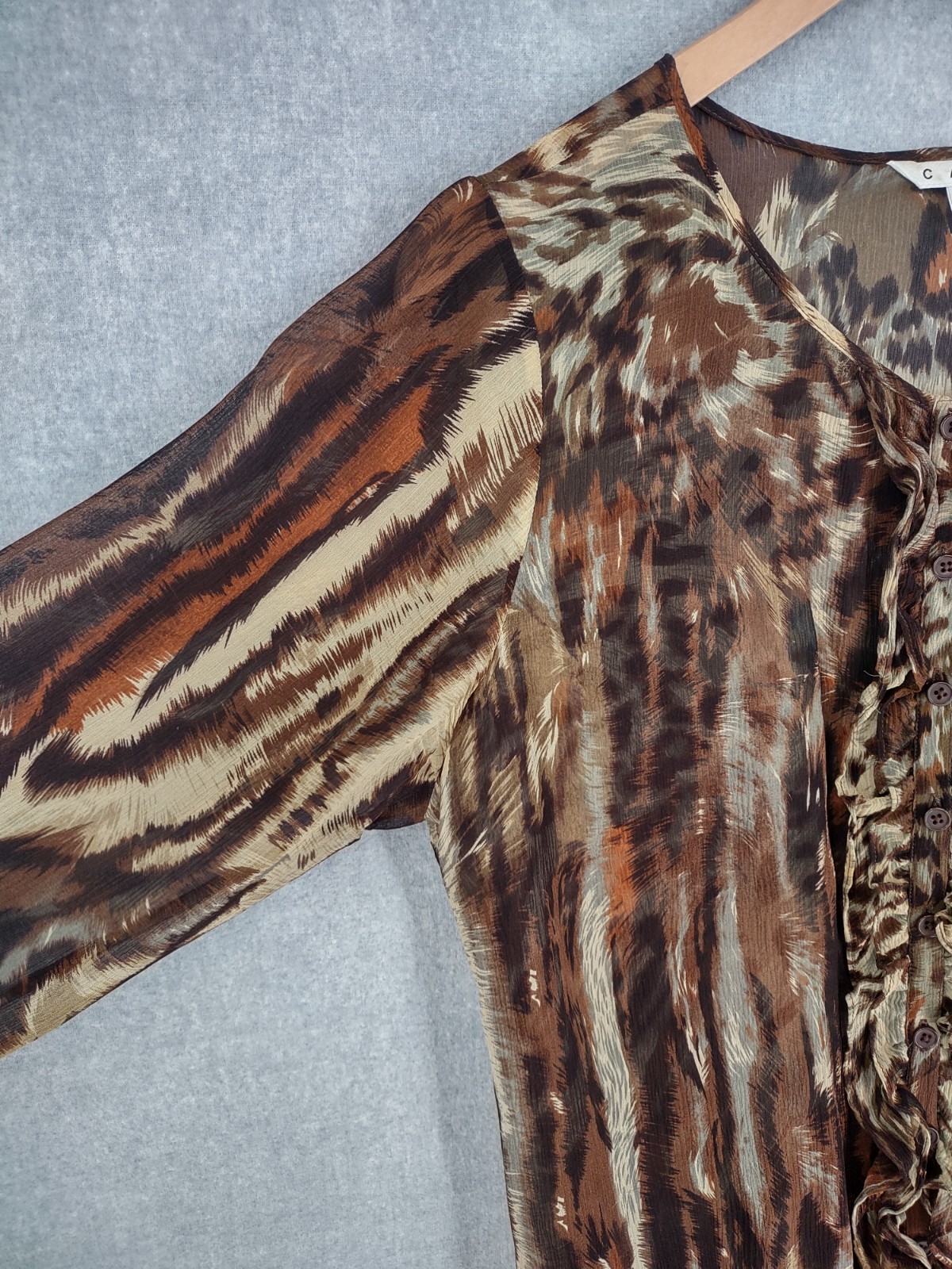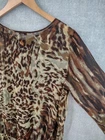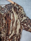Welcome to Aspen Crossing, your destination for modern western bohemian style reflecting the rugged beauty of our American West Cabi Top Womens Large Brown Animal Print 100% Silk Classic Ruffled Button Up Tie Drop Waist Tunic Blouse Long Sleeve Button Cuff It is always best to compare the measurements above with a top that fits you comfortably. CONDITION - Excellent pre-owned condition. All items are cleaned per EBAY standards. Not spot treated. See the photo gallery to view this items measurements and condition. SHIPPED - USPS First Class Mail unless item weight requires priority mail. RETURNS accepted, must be returned within 30 days in original condition to receive a full refund. SHIPPING AND HANDLING We ship all packages within five business days Monday through Friday except Holidays. Consolidated shipping is available for multiple purchases. Thank you for helping our planet and buying previously owned and loved items. I am grateful for your business. Enjoy! Check out our eBay store and follow us. There are new listings daily. CUSTOM SKU: Disclaimer: While we make every effort to capture the most accurate depiction of every item when photographing, colors may vary from screen display to in person therefore we cannot guarantee exact shade on any item. Message us if you have questions.