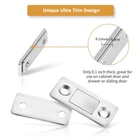Specifications: Color: Silver Dimensions: Length 1.57" X Height 0.67" Material: Iron and neodymium magnets Punching size: 5x5mm / (length x width) Maximum load per: 15 pounds Punch-free Powerful 3M Adhesive Corrosion resistant, durable and easy to install Bright surface polished, smooth surface without burrs It can be used for hOccasions: drawer, closet, wardrobe, bathroom, bedroom, sliding door, etc. Features: These flat magnets for cabinets are made of metal material, corrosion, cracking, more durable and long lasting than the plastic one. The cabinet door closer come with stainless steel mounting high quality screws. You don't need worry about the screw will easily broken on installation process again. High polished surface. Smooth surface without burrs. Easy to Install: Occasions: drawer, closet, wardrobe, bathroom, bedroom, sliding door, etc. Pro Tip: Efore using 3M adhesive, first heat the adhesive to 40-60 ° C, the bonding effect is stronger) Package Included: 4 Packs Cabinet Door Magnets 8 Pcs Stainless steel screws 4 Packs Double-sided Adhesive ✅【ULTRA THIN DESIGN】The total thickness is only 1/7 inch, the magnetic force is 15 pouds, can be used for cabinet doors, ,sliding doors,drawers,Windows and shutters closure. ✅【EASY TO INSTALL】Before installation, the cabinet door should be cleaned first, and then there is no need to drill and screw in the screw holes thus protecting the cabinet door from damage. ✅【 SUPER SUCTION】The double-side adhesive tape is strong enough to stay cabinet shut, suitable for using on the door which the latch or hinge is useless. ✅【LONG-LASTING DURABILITY】You don't need worry about the screw will easily broken on installation process again,These flat magnets for cabinets are made of metal material, cracking, more durable and long lasting than the plastic one. ✅【SUITABLE RANGE】Cabinet doors, Windows Shutters, Sliding Doors, Drawers.