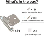UPGRADE YOURS TODAY: The beautiful finish on our semi concealed brushed nickel cabinet door hinges matches your style of cabinet pulls or any nickel decorative hardware that will lift the appeal of your tired-looking cabinets. SELF CLOSING CABINET HINGES : Our proprietary metal spring Satin Brushed Nickel Cabinet Hinges gives you outstanding functionality and product performance. Your cabinet door hinge will automatically close under 30 degrees. Silicon dampers also ensure every close is a quiet one. ½ INCH or VARIABLE OVERLAY CABINET HINGES. It means your cabinet door "overlays" or overlaps the cabinet face frame. These self closing cabinet hinges are also known as the surface mount cabinet door hinges or flush mount hinges for cabinet door. NEWLY UPGRADED HINGE SCREWS. The Decobasics bulk cabinet hinges satin nickel come with newly strengthened 5/8 screws to ensure a perfect fit, even using with power tools. Separately packed with silicon cabinet door bumpers for your convenience. BUILT TOUGH FOR AMERICAN FAMILIES. Our silver hinges for kitchen cabinets can take the everyday grind of large families. Thick stainless steel and an electroplated outer coating of nickel mean they are durable, rust-proof cupboard hinges made to last. Product Description Decobasics hardwares are made to fit your home and lifestyle perfectly. High performance and premium quality with long-lasting durability. The Beauty and Classic Style of Cabinet Hinges Premium Quality Variable Overlay Hinges Decobasics variable overlay hinges are made out of premium thickened materials for required durability and longevity. Each hinge is constructed with attention paid to every last detail so you can be assured that your cabinet will be functioning perfectly. Variable Overlay Soft Closing Hinges. Strong, Durable and Beautiful. Quality Steel Screws and Door Bumpers. Comes in Different Color Options. Suitable for Every Traditional Kitchen & Bath Cabinet. Self-Closing Hinges Durable and flexible metal spring’s module ensures automatic functionality to open and close the cabinets when the door angle is less than 30°. Suitable for American Style Face Frame cabinets Our overlay cabinet hinge works on old American Face Frame kitchen cabinets doors in the kitchen, bathrooms, and any room in your house. 1/2” Silicone Round Door Bumper Each cabinet hinge comes with a cabinet door bumper to damper/reduce the slamming noise of cabinet doors and hardware.