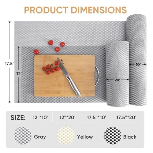 Return Policy Fast Delivery Trusted seller Cabinet Liner, Drawer Liner, Shelf Liners for Kitchen Cabinets Non-Adhesive, Non-Slip Protect Desks, Cupboard, Drawers, Shelves, Tableware (12 in x 20 Ft, Gray) Product Description [STRONG GRIP] Drawer liners provide excellent grip, effectively reducing the sliding and stacking of items in drawers and shelves to keep your belongings organized. [CUSHIONED PROTECTION] The drawer liners use a soft cushion design that protects your items from breakage or damage even during rapid drawer movements. The breathable perforated structure can also keep items dry, preventing moisture accumulation. [VERSATILE] This non-slip cabinet liner is not only suitable for cabinets but also serves as drawer liners, shelf liners, cutlery cabinet liners, wardrobe rack liners, and more. It can even be used as carpets or sofa liners, providing additional organization and protection for your household. [EASY TO USE & CLEAN] The shelf liner comes in 4 sizes for your choice, 12''x10', 12''x20', 17.5"x10', and 17.5''x20'. It can be easily cut to size as needed, making installation quick and hassle-free. Cleaning is simple, just wipe away dirt with mild soap and a damp cloth. [ QUALITY COMMITMENT] stands behind the quality of our products. If for any reason you are not satisfied with your purchase, please contact us. We provide 30-day money back . 100% Satisfaction for risk-free shopping! Shipping Returns Payment Shipping Shipping is FREE to all addresses other than APO/PO boxes in the lower 48 states. All our stock ships from US-based warehouses. Shipped via USPS or UPS (depending on location and package weight) Unless stated otherwise, all orders will ship within 24-72 hours of your payment being processed. Check our feedback to see the great reviews of FAST shipping we offer. Returns Seller does not accept returns Payment We currently accept payment via eBay managed payments only. Once payment is cleared, we will dispatch your shipment within 1-3 business days. Please refer to the "Shipping" tab for more information regarding shipping speed to your destination.