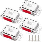 Long-Lasting Durability: 304 stainless steel housings, specifically designed to stand up to marine use, outdoor use or wet environments like kitchens and bathrooms. Against corrosion, cracking and rust. Make these metal window shutter magnetic catches are long-lasting than the plastic ones in the sun. Easy to Position & Install: First anchor the magnet in the cabinet door frame, then place the steel plate onto the magnet. Peel off the double sided ahesive (Comes in red and white colors and will be shipped randomly) and stuck to the steel plate. Close the cabinet door tighly and open the door. The steel plate is stuck to the door in the perfect position. Just screw the plate in place. The strips make the installation so much easier. Powerful Magnetic Force: Each mount houses a single magnet with strong force that holds the plantation shutter, cabinet door, drawer, lid securely closed. Good for using on the door which the latch or hinge is useless. Also perfect for keeping your little pet from break into your cabinet for fun. Well-made: Elliptical slotted screw holes also help to adjust the location to align the steel plate with the magnet piece. These furniture magnetic latches come with stainless steel mounting screws. You don't need to worry about the screw that will easily break during the installation process again. What You Get:4 x Cabinet Latches and Catches; Screws