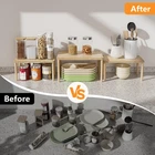 Make better use of your cabinets and countertops with the Cabinet Storage Organizer Shelves, Set of 3 This stackable set includes one large and two small shelf risers that can be stacked, nested, or placed side by side to instantly create more storage space. Well-suited for organizing spices, plates, mugs, bowls, or pantry items, everything stays visible and easy to reach Built from sturdy solid wood, these shelves stay stable for daily use and keep your items neatly arranged, whether in cabinets, on countertops, or under the sink. Their versatile design makes them perfectly suited for kitchens, bathrooms, pantries, or even desks Quick to assemble and easy to clean, these shelf risers provide a simple, effective way to maximize vertical space and reduce clutter throughout your home 【Space Saving Organization】Kitchen countertop organizer creates a second level on cabinet shelves and kitchen shelves so spices, mugs, bowls, and plates stay visible and easy to reach for kitchen organization 【Stackable Nesting Set of 3】Cabinet organizers and storage set of 3 includes 1 large and 2 small shelves that stack nest or sit side by side. Slide the small under the large to build a two tier rack for pantry shelves and cupboard storage 【Sturdy Wood Construction】Spice rack organizer for cabinet keeps spices neat and visible. Solid wood shelf risers stay steady for daily use and furthermore serve as display shelves or a plate organizer for cabinet 【Versatile for Kitchen and Home】Pantry organizers and storage holds daily items on strong shelf risers and likewise works as a kitchen counter organizer or desk organizer shelf. Use in the pantry or bathroom for quick access 【Easy Assembly and Care】Kitchen shelf organizer sets up in minutes and wipes clean for use on cabinet shelves. Suitable for under-sink, bathroom, and pantry organization