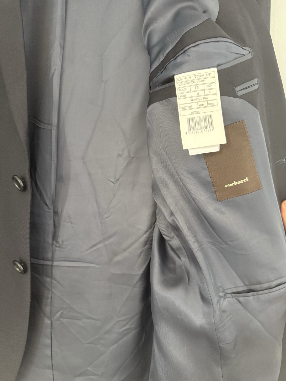 Description (описание): Elevate your wardrobe with this stylish Cacharel men’s blue wool blazer. Made in Turkey with a wool blend shell and 100% viscose lining, it offers comfort, quality, and timeless design. European size 48 (US 38). Perfect for work, casual wear, or collectors of designer menswear. In good used condition with no visible defects.