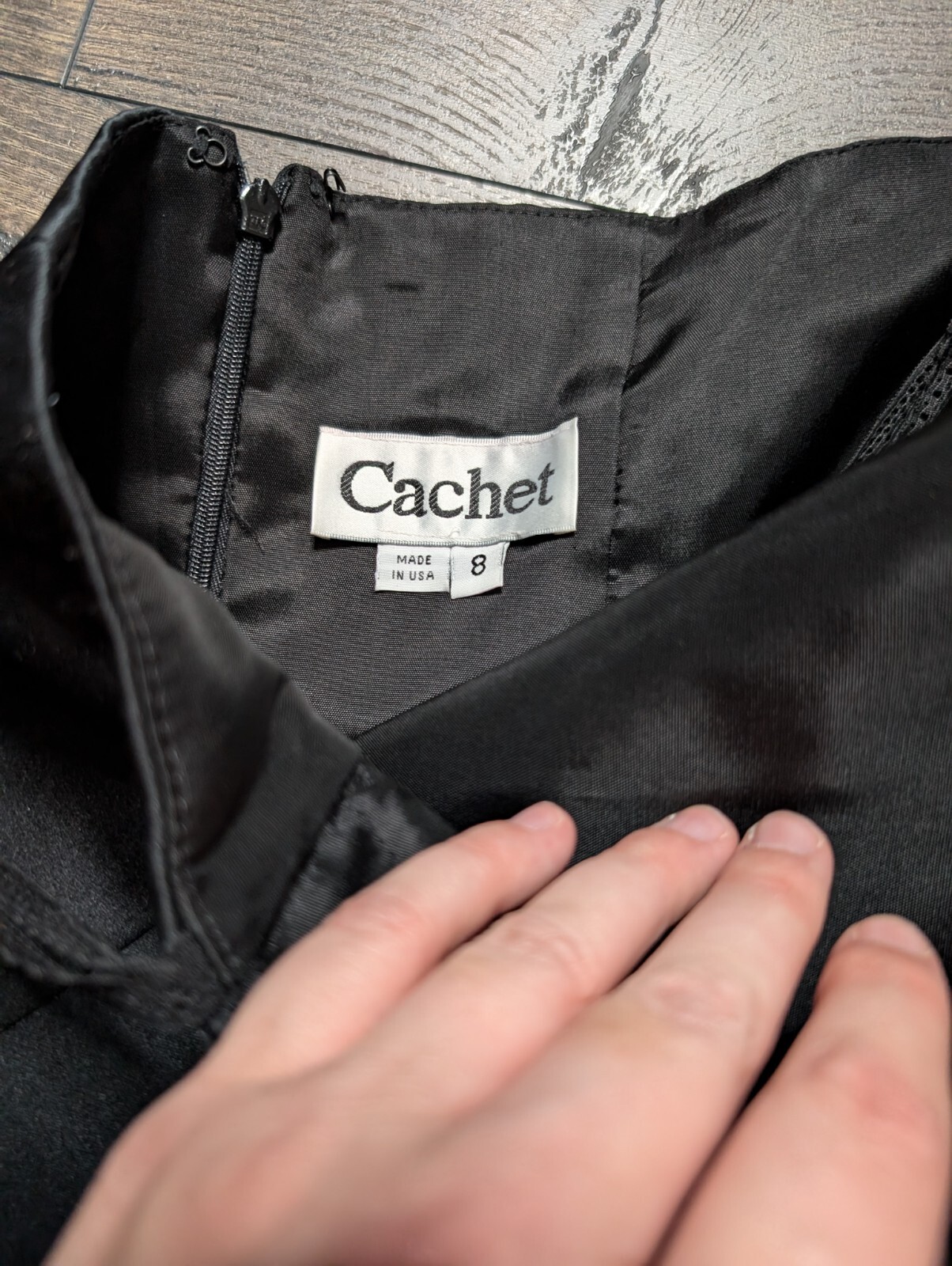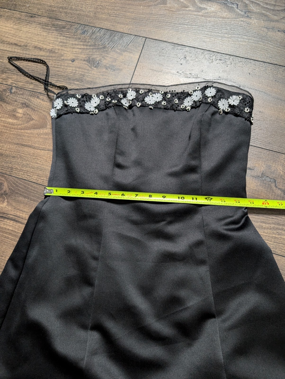 This vintage Cachet dress in size 8 features a sleeveless design with a fit & flare style, adorned with a beautiful white floral accent on a black background. It has a zip closure and is suitable for occasions like weddings, parties, or formal events, adding a touch of elegance and sophistication to your outfit. Perfect for women looking for a chic and timeless piece with a classic floral theme. Absolutely adore tulle under a skirt, this one's perfect for you! Size: 8 Questions, offers, and bundles welcome!